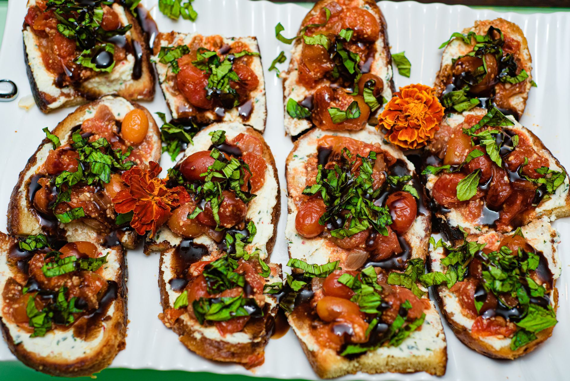 tossed crostini topped with roasted tomato & Ricotta basil spread