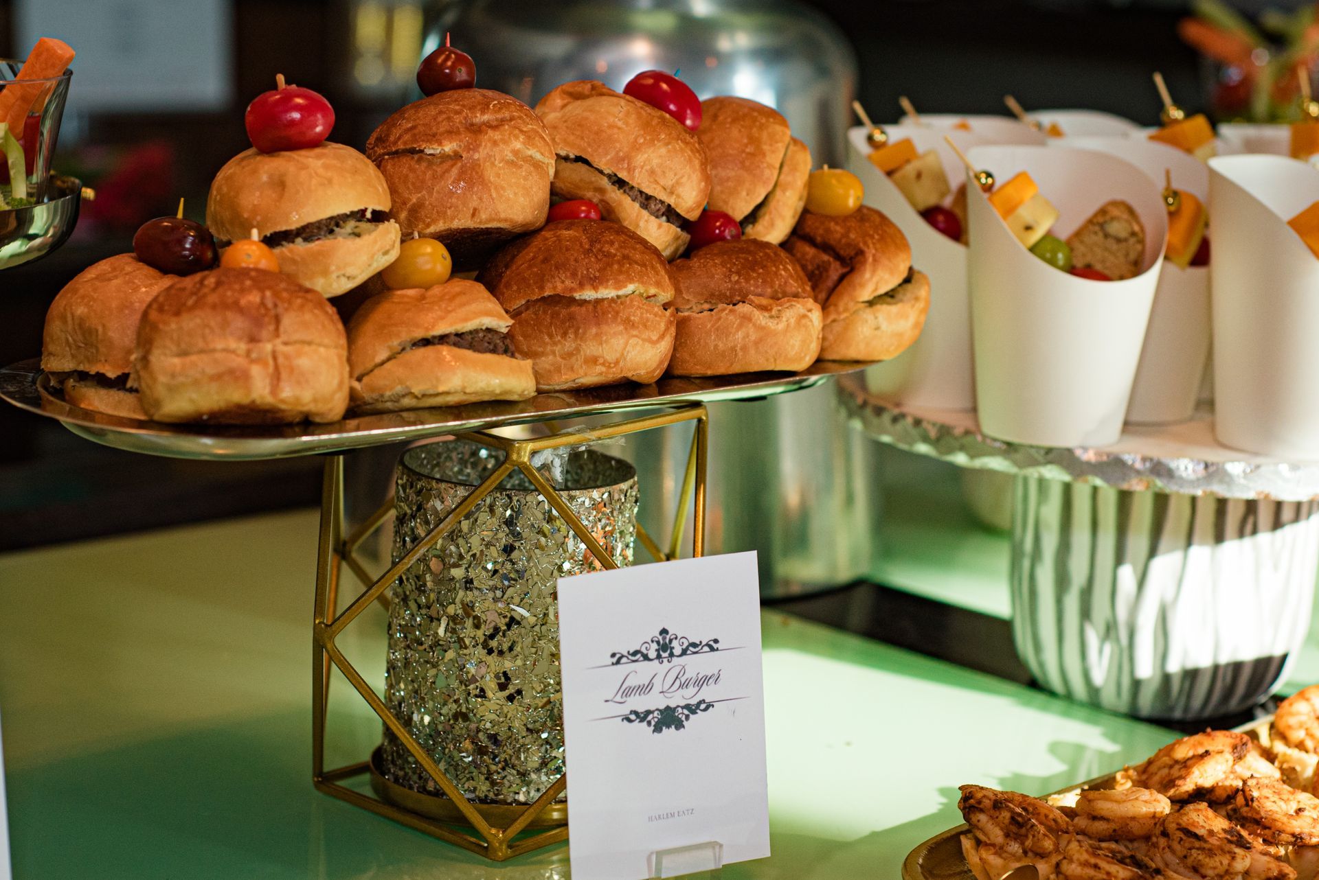 mini lamb burgers topped with arugula, red onions or mint aioli, sliced seared ribeye topped with pepper jack & grilled onions or fresh salmon cakes topped with honey sriracha tartar